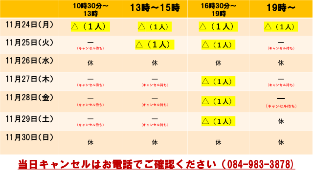 11月26日現在の予約状況