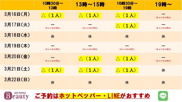 3月14日現在の予約状況