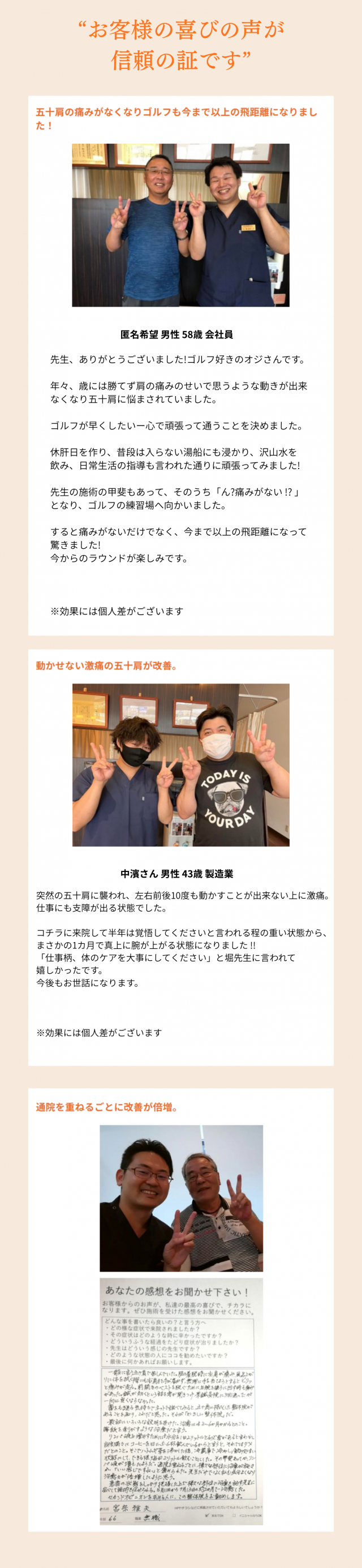A. もちろん大丈夫です。アプローチの仕方は治療院によって異なります。当院でも「他で変化を感じられなかった」という方が多く来院され、改善に向かわれていますので、安心してお任せください。
