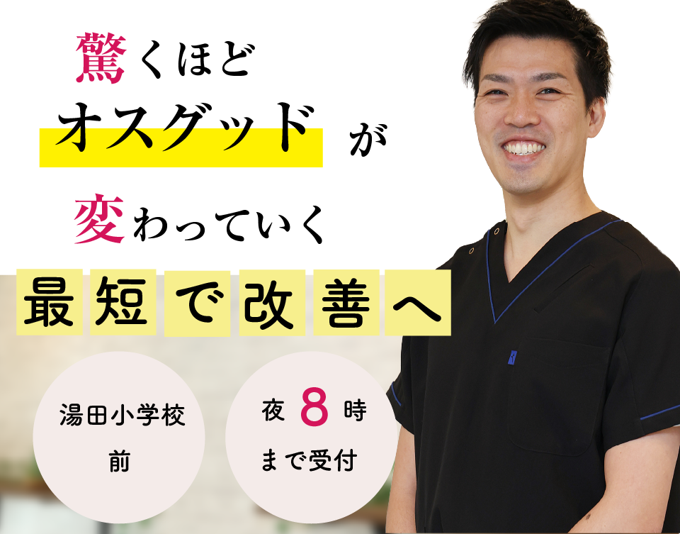 特に、オスグッドは当院で得意としている病気になりますので、是非お気軽にご相談ください。