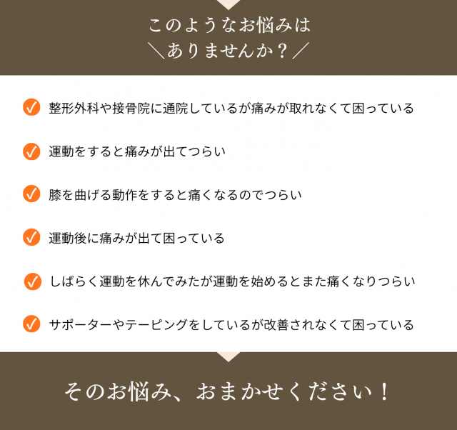 Aはい。可能です。当院ではなるべく運動を続けながらの改善を目標に施術させて頂いております。