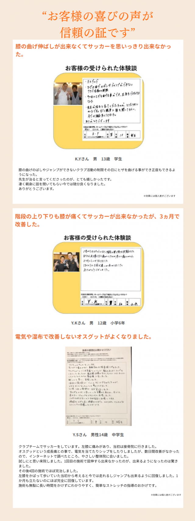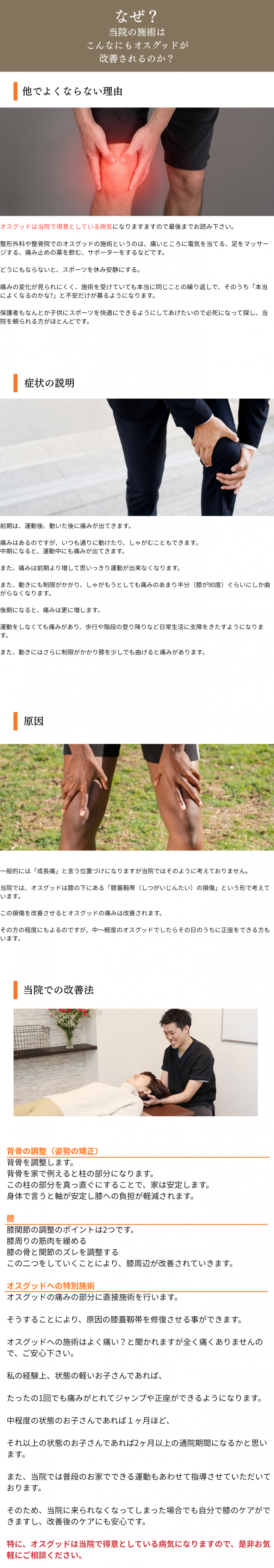 Aオスグッドは無理な練習や膝への負担から再発することは十分に考えられます。何が原因となってオスグッドの症状を出しているのかをしっかりと判断しそれに対して適切に処置することが大切です。