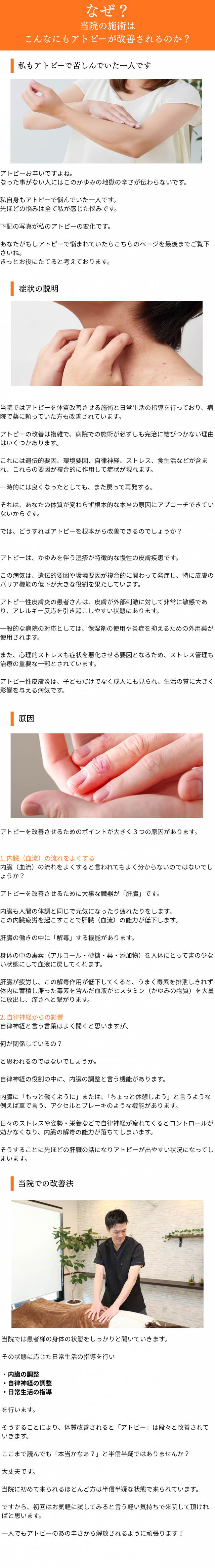 当院では、内臓の働きを整える整体を通じて体質改善を図り、症状をうまくコントロールできる状態(寛解)を目指すことが可能だと考えています。肌の表面だけでなく、体の内側からケアすることで、健やかな状態を維持しやすい体づくりをサポートします。